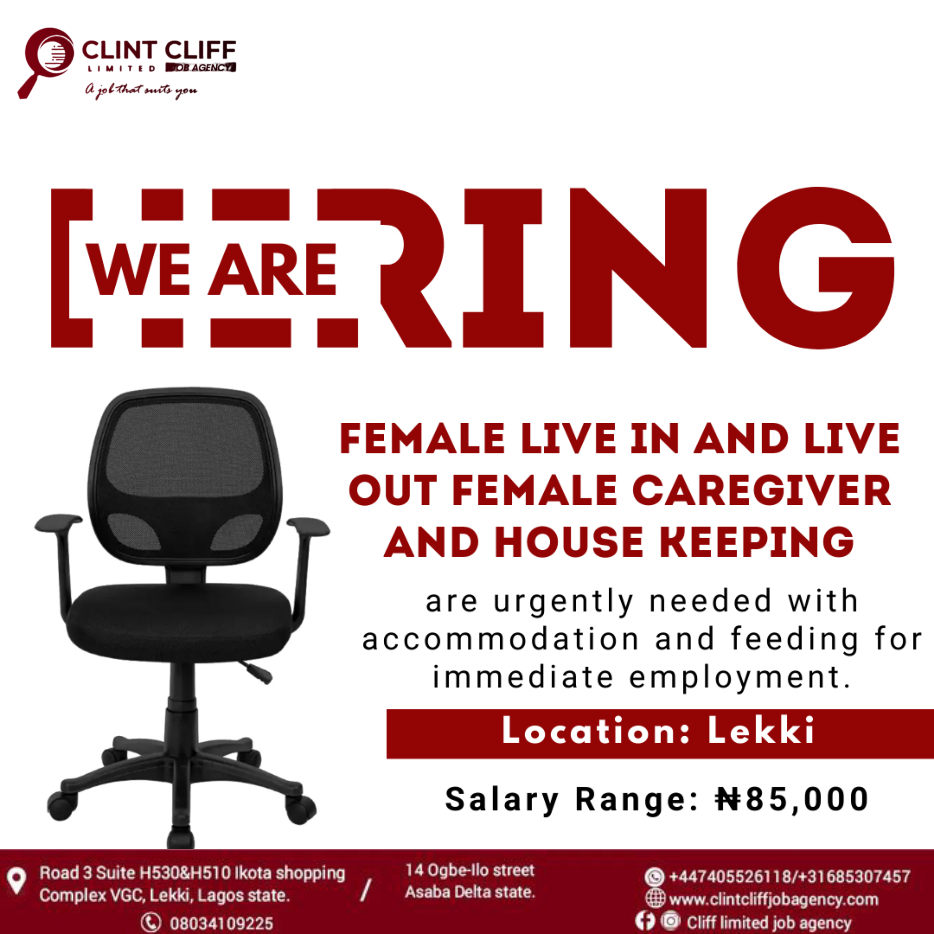 FEMALE CAREGIVER AND FEMALE HOUSEKEEPER NEEDED
