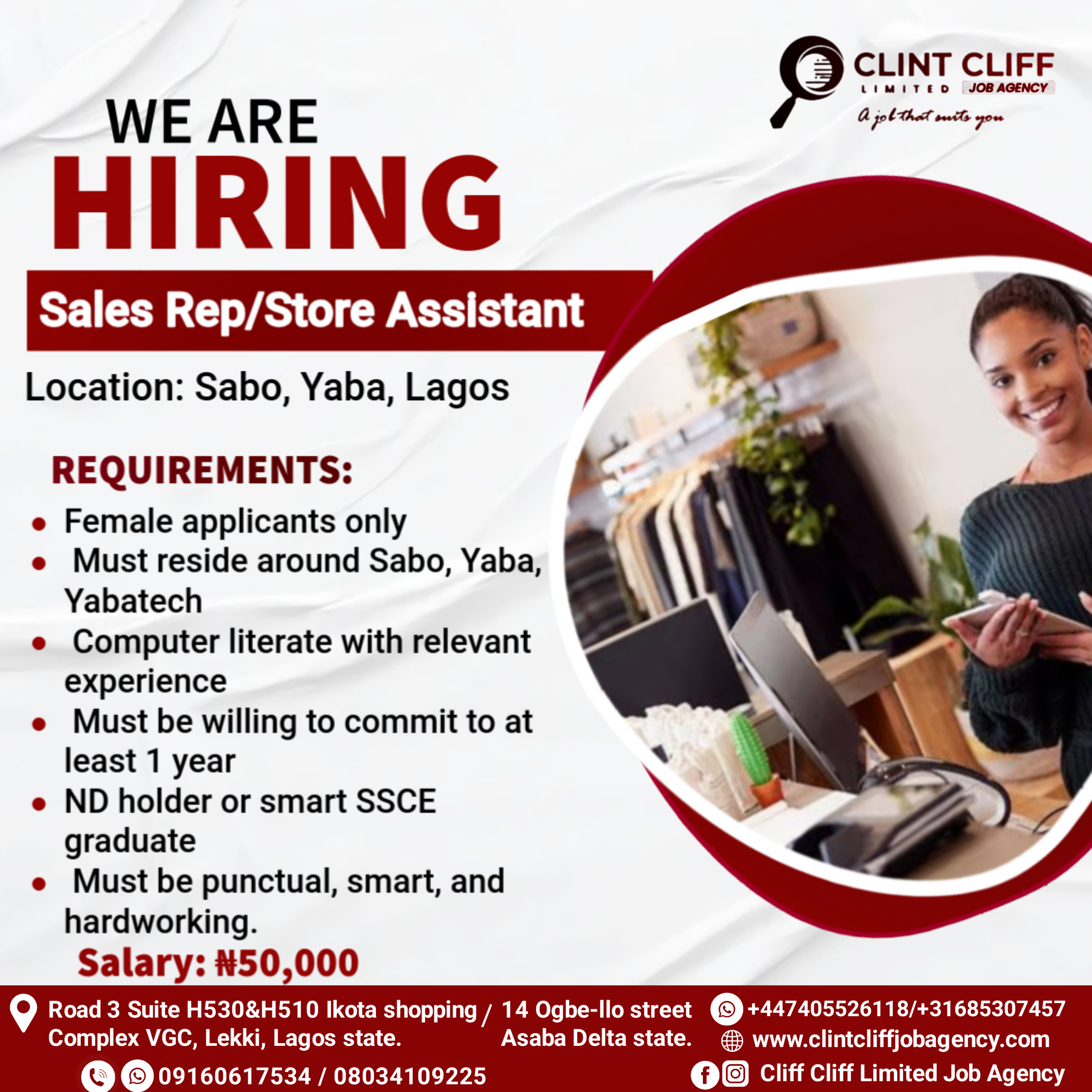 SALES REP/ STORE ASSISTANT NEEDED